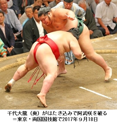 <大相撲>千代大龍「イメージ通り、完璧」 阿武咲降し自賛 ―― 大相撲秋場所(両国国技館)9日目の18日、千代大龍が快進撃を続けてきた阿武咲を圧倒した。悔しさからか土俵に手をついて動けなかった21歳の新鋭に対し、28歳の三役経験者は「朝の稽古(けいこ)から考えていた。イメージ通り。完璧ですね」と自賛した。