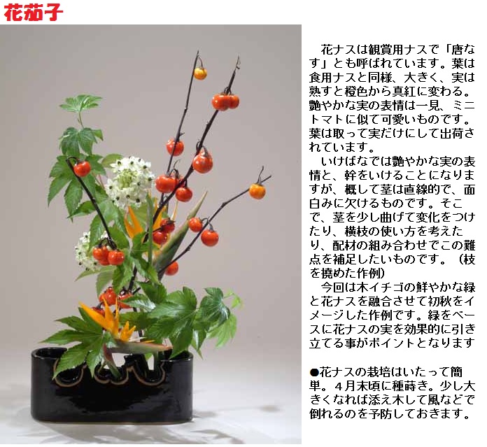 なかには、「赤ナス」のような観賞用として生け花などにも利用されているもの(熊本県などで「赤ナス」の商品名で栽培されている食用の品種とは別物、また赤茄子はトマトを表す)もあります。赤ナスは食用のナスの台木としても用いられます(観賞用の赤ナスは味などにおいて食用には適さないとされています)。