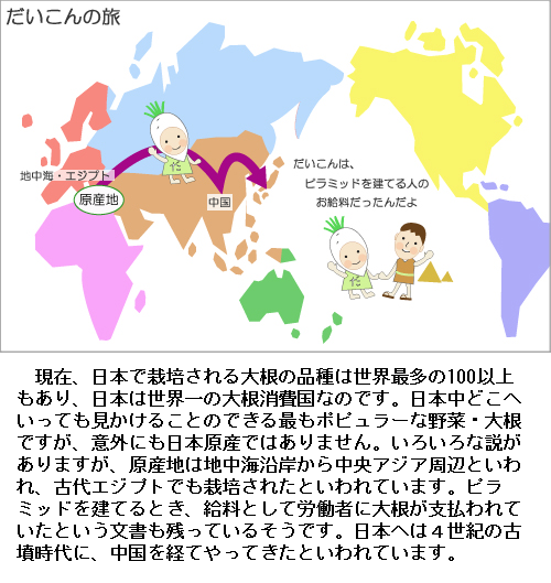 大根は古事記にも記載があり、仁徳天皇陵からも大根の種が発見されています。