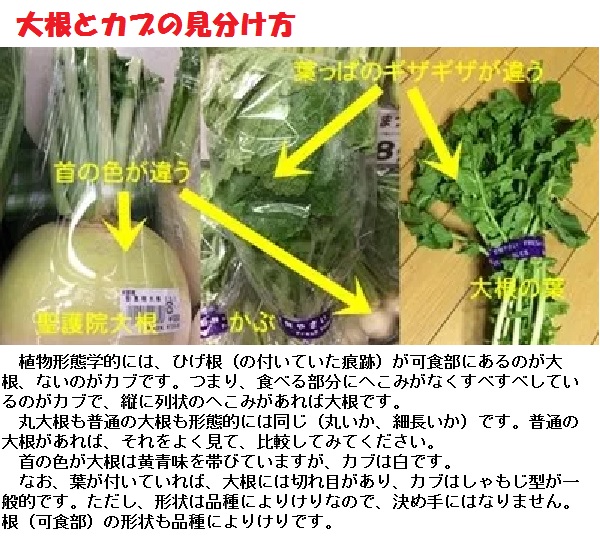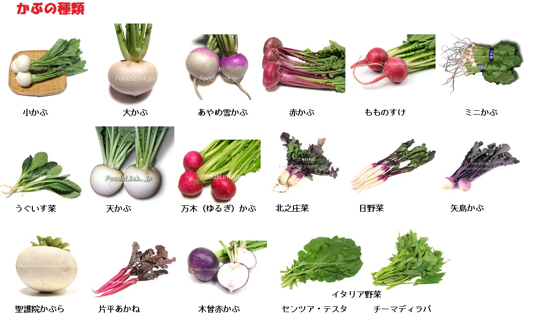 かぶの品種は非常に多く、全国各地に地の物があったりしますが、大きく分けると、大きさで小かぶと大かぶ、色で赤カブ、それに丸くなく、長い形をした日野菜などがあります。