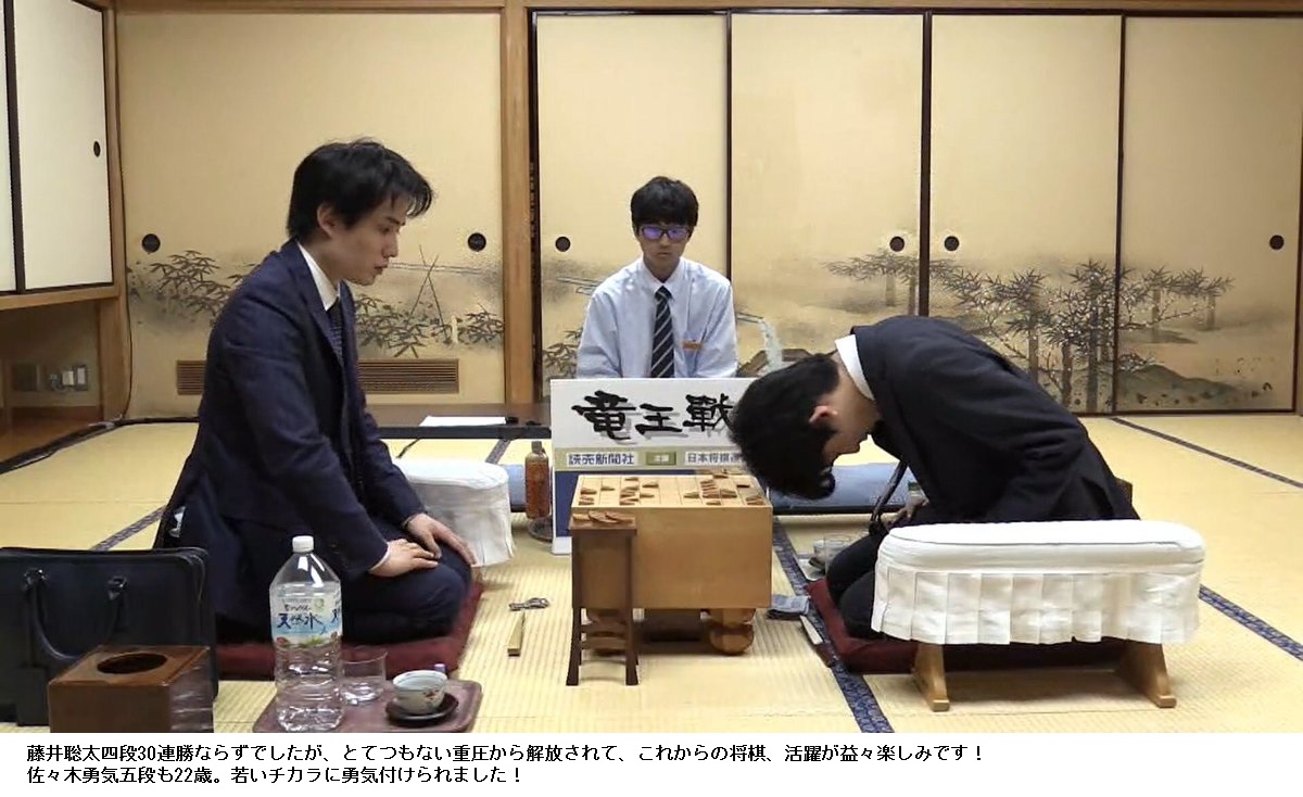 29連勝は歴史的な快挙です。結果も素晴らしいですが内容も伴っていいる点でも凄みがあります。この記録は時が経つにつれ重みを増して来るはずですし、将棋界の新しい時代の到来を象徴する出来事になりました。檜舞台で顔を合わせる日を楽しみにしています。