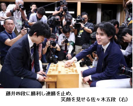 「プロの世界で3%はかなりの差の事を言います。新記録を達成し今のところ怖いものなしで、実力はさておき、絶好調の気分によって(戦うため)佐々木は苦しい」と一二三・九段は説明している。 (JTSTニュース 2017/6/27 18:06)