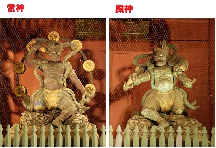 1960年、松下電器産業(現パナソニック)の創設者、松下幸之助が病気だったころに浅草寺に拝んだところ、治ったためそのお礼として門及び大提灯を寄進し、現在の雷門が成立したといいます。風神・雷神像は、江戸時代の頭部(火災により焼け残ったもの)に、明治時代に造られた胴体をつなげた物を引き続き使っているそうです。