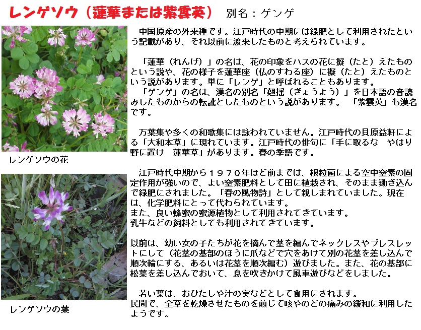 「それから今ひとつさらに分布の更に弘い方言がある。岐阜県では山に属する北半分、信州でも主として北信の諸郡において、クジナといって居るのがそれである…… クジナといふ名詞も又飛び散って奥羽の処々に行はれて居る。例へば宮城山形の二県の南半分でクジナ又はグジナ、九戸の褐巻付近ではクジッケァともいって居る。羽前も米沢あたりはタンポポに近い別の名前があって、嫩(ワカ)い葉を食料にするばかり、クジナといふ語を用ゐるのである。越後でもグズナは野菜としての蒲公英の名であった。多分は北信などの臼歌も同様に、元はタンポポもクジナの花で通って居たのであらう。」[「柳田國男全集」第22巻「蒲公英」、筑摩書房]