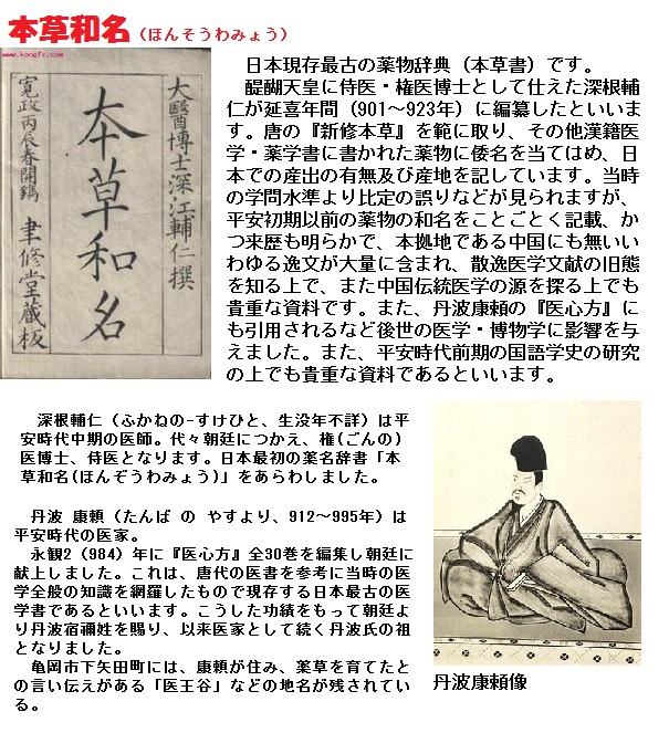 日本で最も古い植物辞典とされる平安初期の本草書「本草和名」(深江輔仁、918年頃)のタンポポの項には、
