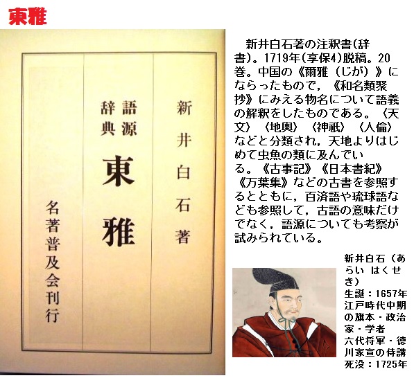 和名フヂナ・タナについては、「本草和名」にもこれ以上の説明はありません。しかも、「万葉集」や「古今和歌集」の歌にも全く歌われていないのです。だからわれわれは、10世紀初頭にタンポポの前身と思われるフヂナやタナと、ここで突然に対面することとなるのです。フヂナ・タナという音だけがある植物に(ほんの一部にすぎないものの)始めて説明を加えたのが「東雅」(新井白石、1717年)です。