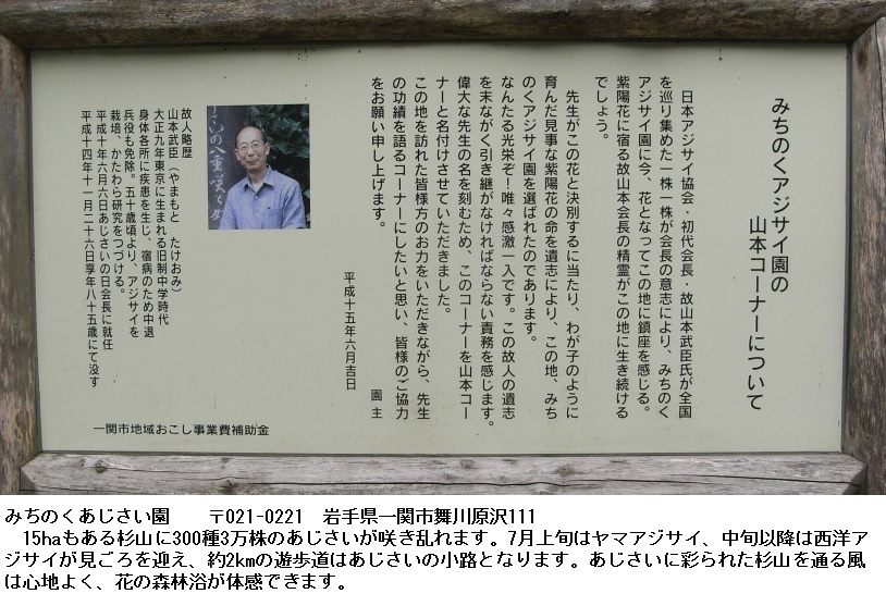 〔あじさいが幾重にも群がって咲くように、変わりなくいつまでもお健やかで居て下さい。私はこの花を見るたびにあなたを思い出しましょう。〕