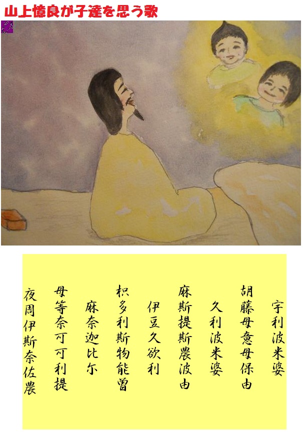 瓜(うり)食(は)めば 子ども思ほゆ 栗(くり)食めば まして偲はゆ いづくより 来りしものぞ まなかひに もとな懸かかりて 安(やす)寝(い)し寝(な)さぬ 万葉集巻5 802