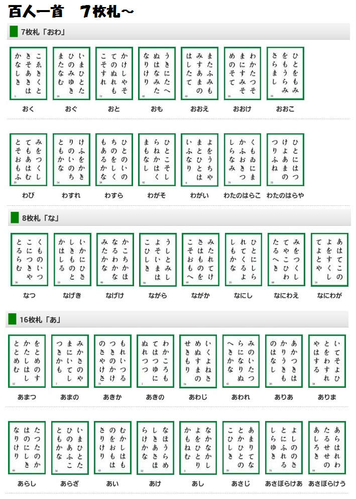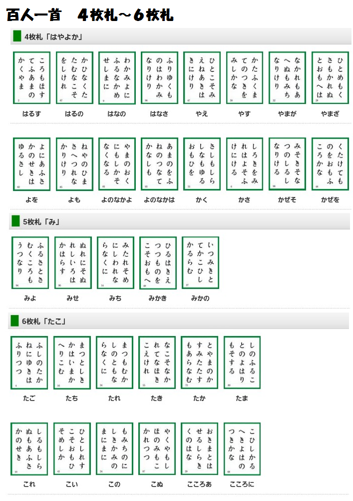 ※ 下の句札の一番上の字で覚える