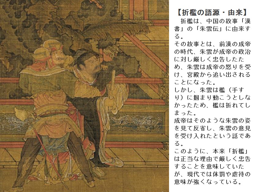 「折角」と「折檻」は双生児といっていいでしょう。どちらも「折」という字が頭にくっついていますし、どちらも出典は『漢書』ですし、どちらもエピソードの主人公は朱雲という人物なのです。しかも、ごていねいに、どちらも日本で頻繁に用いられている言葉なのに、どちらももともとの意味とは異なった用法になっています。まったくこれほど双生児的なことばもめずらしいでしょう。