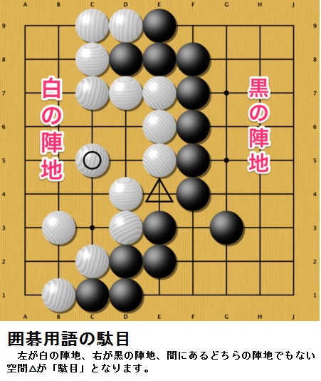 駄目【だめ】 一般的な意味:良くないこと 囲碁での意味:打つ価値の無い場所、石の呼吸点