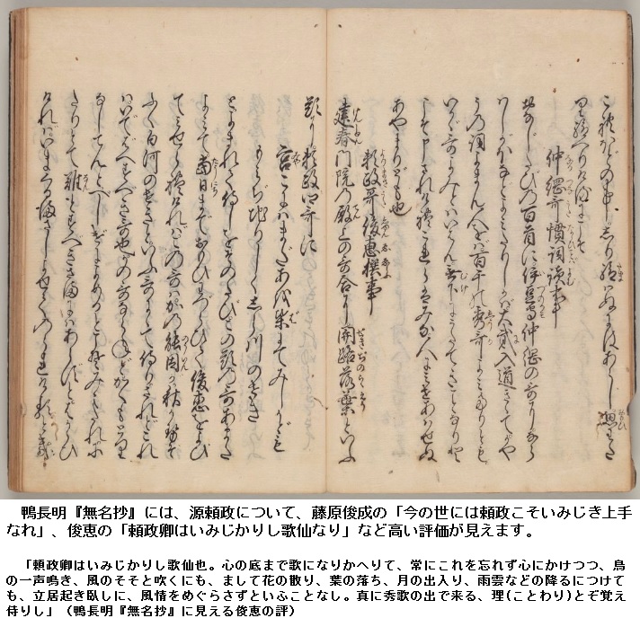 これをなん、身にとりては面歌(おもてうた)と思ひ給ふる。』と言はれしを、俊恵、またいはく、『世にあまねく人の申し侍るは、