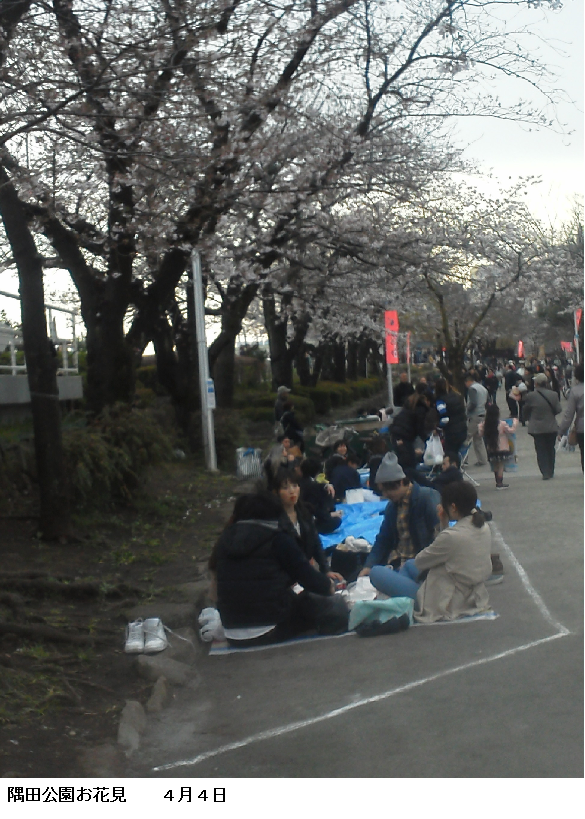 昨日は朝食後、散髪に行きました。帰りに隅田公園の桜を携帯に納めてきました。まだ、8分咲きという所ですが、公園内は朝から花見客で込み合っていました。