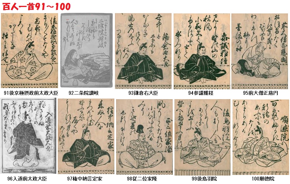 百人一首についての調べも最後に入りました。百人一首91~100について調べてみました。