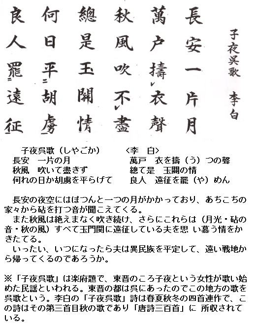 現代語訳 奈良の吉野の山に、秋風が吹きわたる。夜がふけて(吉野という)かつての都は寒々とわびしく、衣を砧(きぬた)で叩く音が響いている。