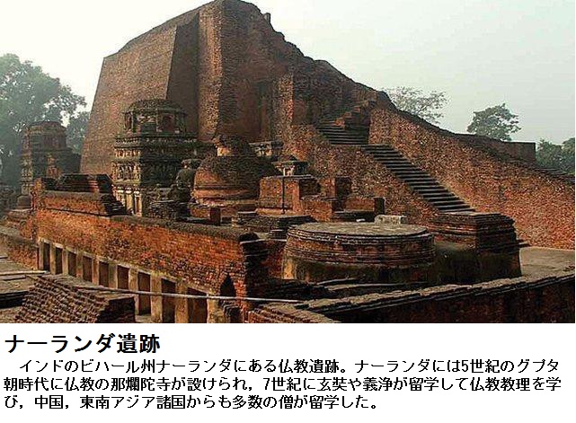 入宋(にっそう)の沙門(しゃもん)、道眼上人(どうげんしょうにん)、一切経を持来(じらい)して、六波羅のあたり、やけ野といふ所に安置(あんぢ)して、ことに首楞厳経(しゅりょうごんきょう)を講じて、那蘭陀寺(ならんだじ)と号(こう)す。その聖(ひじり)申されしは、「那蘭陀寺は大門北向きなりと、江師(ごうそつ)の説とて言ひ伝へたれど、西域伝(さいいきでん)・法顕伝(ほっけんでん)などにも見えず、更に所見なし。江師は如何(いか)なる才学(さいかく)にてか申されけん、覚束(おぼつか)なし。唐土(とうど)の西明寺(さいみょうじ)は北向き勿論なり」と申しき。