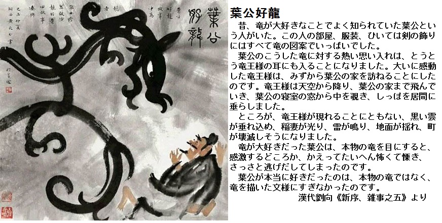 この歌(の『たつ』)を、基俊が、『鶴(たづ)』だと勘違いして、『田鶴(たづ)は沢に住むけれど、雲の中に住むことなんてあるか』と非難して、負けにしてしまった(ちなみに、この時、俊頼の相手になっていたのは、基俊の歌だったから、この判定は当り前)。しかし、俊頼(は、基俊が勘違いしているのに気づきながら)、その場では、判詞を加えることもなかった(きっと誰かが基俊の誤りを指摘するだろうと信じて)。その時に、ない大臣・忠通殿が、『これは、鶴(たづ)ではなくて、龍(たつ)である。例のなんとかとかいう人(=葉公子高)が、龍を見たいという気持ちが深かった(から、龍の絵を集めまうっていたという噂をホンモノの龍が聞いた)ので、その人(=葉公)のために(ホンモノの龍が)出現して姿を見せた(けれど、その姿に葉公はびびった)、ということがありましたが、その故事を(ふまえて)読んだ歌である」と、(後に)判詞に書いたそうだ。基俊が、(自分は知識人だと)思い込んでいたのだろうか、何であれ、考えなしに他人のことを非難するくせがあったそうで、その後も失策が多かったそうだ」と語った。
