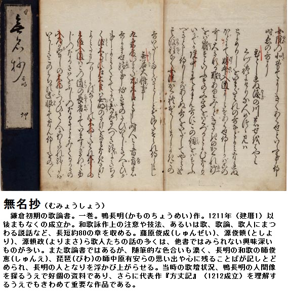 ※俊恵は洛北・白河の僧房で歌林苑と名付けた歌合を月毎に催していました。そこには官位の低い僧侶・貴族・女房などが集って親密な雰囲気に包まれていたとされ、会衆の一員だった鴨長明は『無名抄(14)千鳥、鶴の毛衣を着ること』でその場の雰囲気を伝えています。