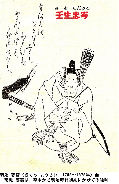壬生忠岑(みぶのただみね、生没年不詳)は平安前期の歌人。三十六歌仙の一人。『古今集』の撰者の一人。忠見の父。