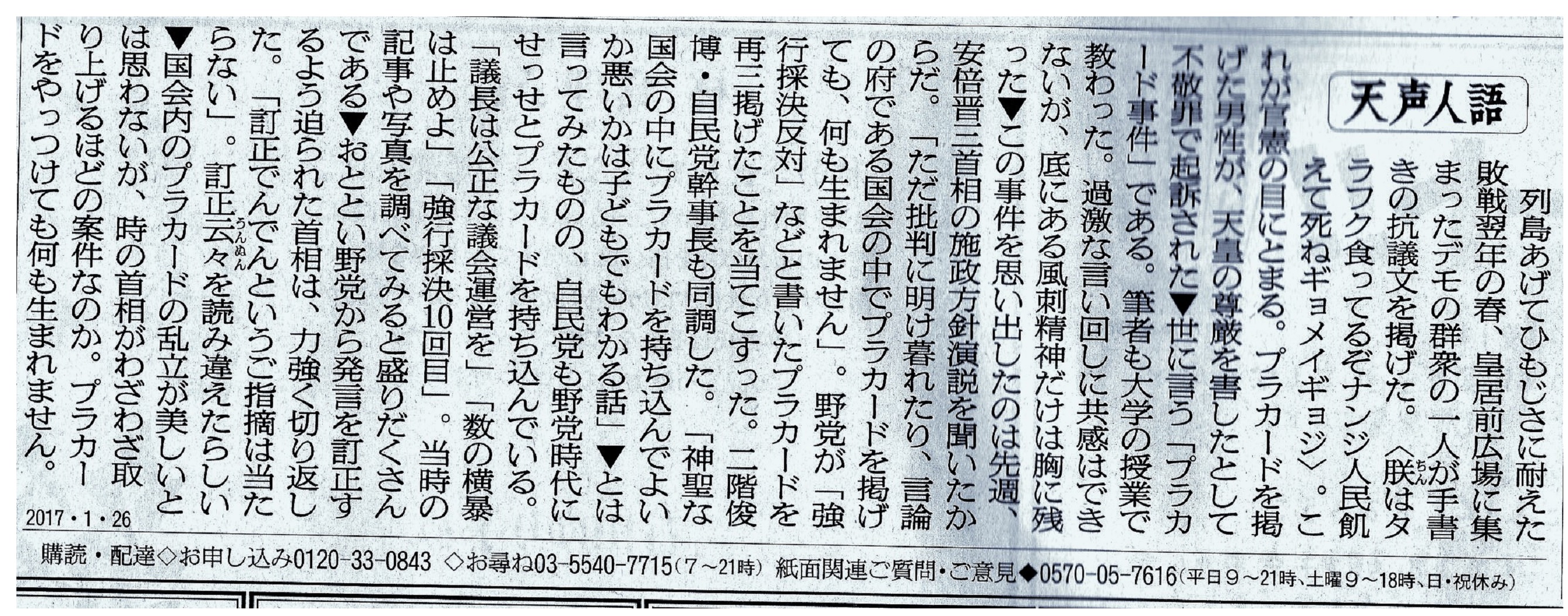 と述べたことを問題視。自民党も野党時代に国会でプラカードを掲げたことを指摘しながら、