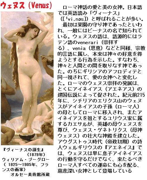 英語での月名、Aprilはラテン語のAprilis(アプリーリス)。Venus(ウェヌス、相当するギリシャの女神アフロディーテのエトルリア名Apru〈アプル〉より)に捧げられた月を意味します。