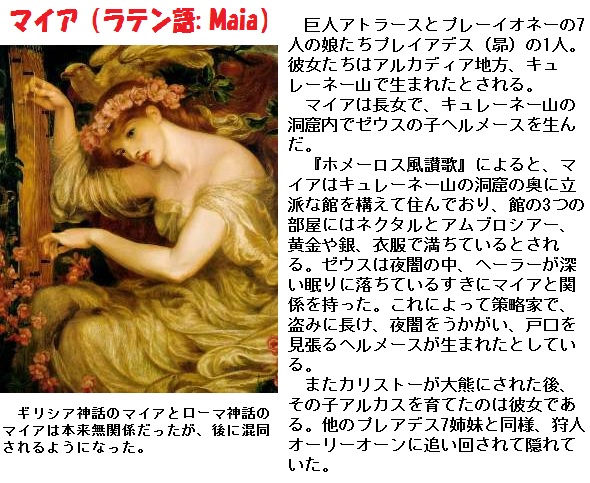 日本書紀などでは「五月」と書いて「さつき」と読ませており、皐月と書くようになったのは後のことです。また「皐月」は花の名前となっています。「菖蒲月(あやめづき)」の別名もあります。旧暦の五月は新暦では6月から7月に当たり、梅雨の季節です。五月雨(さみだれ)とは梅雨の別名であるし、五月晴れ(さつきばれ)とは本来は梅雨の晴れ間のことです。英語名などのMayはローマ神話で豊穣を司る女神マイア (羅: Maia) の名に因むといわれています。ローマ神話には春を司る豊穣の女神マイア(Maia)がおり、マイアの祭日である5月1日は供物が捧げられました。これがメーデーの起源なのです。ギリシア神話のマイアとは本来は無関係ですが、のちに混同されるようになりました。またメルクリウスとも関連付けられるようになり、5月15日のメルクリウスの祭日にも祀られるようになったといいます。