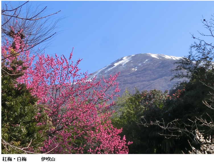 添付の写真は ”紅梅 白梅 伊吹山” です