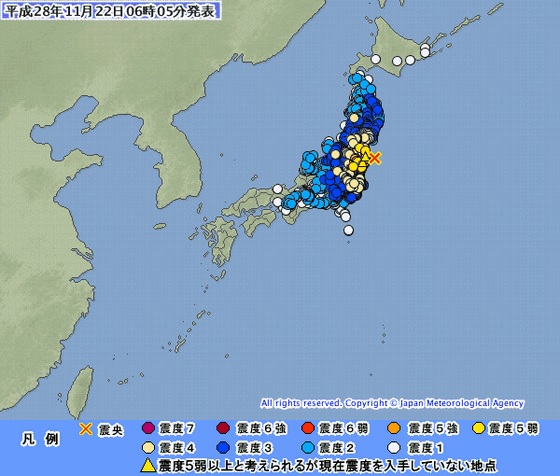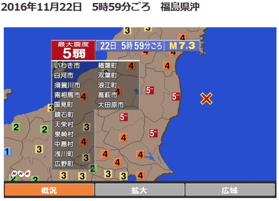 2016年11月22日 5時59分ごろ 福島県沖 - 地震情報|NHK
