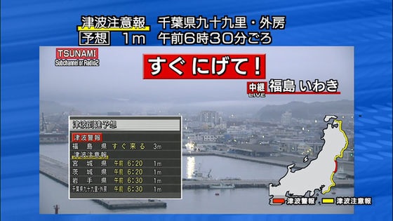 NHKでは「すぐにげて!」「すぐ避難を!」のテロップが表示されました。