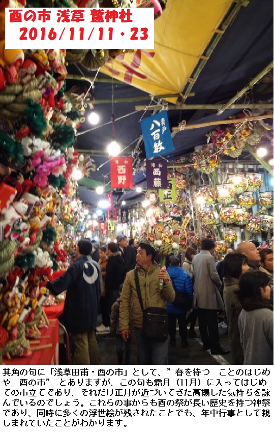 昨日は勤労感謝の日で、二の酉と重なり、淺草の鷲神社周辺は大変賑わったと言います。