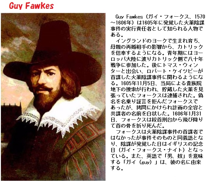 現在では、本来の宗教的な意味合いはほとんど失われ、欧米、特にアメリカで、民間行事として定着しています。カボチャの中身をくりぬいて中にろうそくを立てた「ジャック・オー・ランタン」をつくったり、子どもたちが魔女やお化けに仮装して、近くの家々を訪れ「Trick or treat(お菓子をくれなきゃ、いたずらするぞ)」と唱えてお菓子をもらったりする風習などがあります。家庭によっては、カボチャのお菓子をつくったり、子どもたちがもらったお菓子を持ち寄って、パーティーを開いたりします。イギリスでは、ハロウィーンは11月5日の「Guy Fawkes' Day」に統合されたような存在になっています。「Guy Fawkes' Day」とは、1605年に、ガイ・フォークスたちカトリック教徒による国会議事堂爆破計画を未然に防げたことを記念する行事で、子どもたちが「guys」と呼ばれる人形を持って街を練り歩き、最後にその人形を焼くというものです。