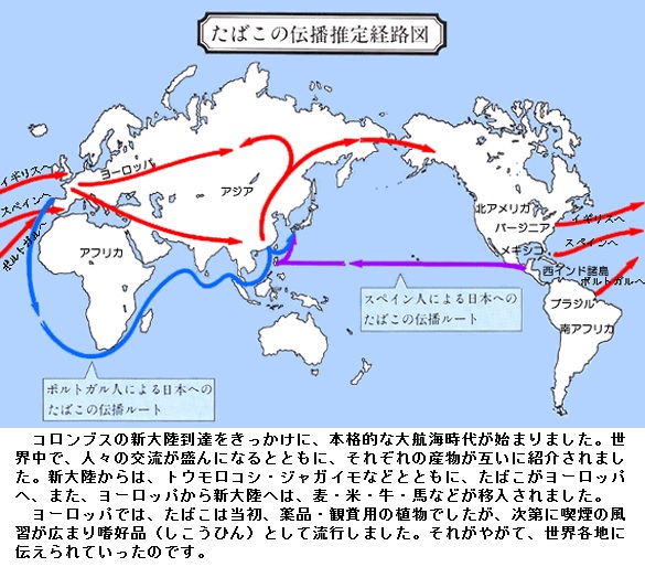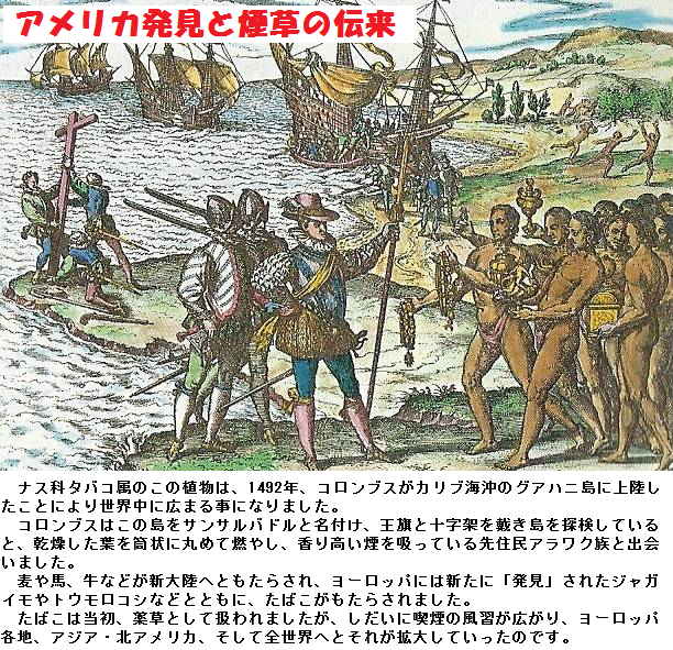 煙草は南アメリカが原産ですが、コロンブスがハイチから土民が吸っているのを見てポルトガルに持ち帰ったと言われています。