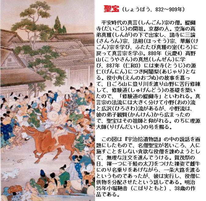 「聖宝は我が身を捨てて、人を導くことのできる者である。今の世に、どうしてこれほど貴い人がいるのか」と、召し出されて、聖宝を、僧正の位にまでのぼらせたのだった。醍醐寺は、この僧正が建立したものである。