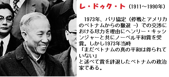 しかし、ベトナムの戦火は完全には消えていなかった。公式サイトによると、北ベトナムからは「米国が停戦違反を繰り返している」ことを理由に受賞拒否が伝えられた。委員会は「ベトナムの状況が許せば翌74年10月1日まで受賞は可能」と待ち続けた。ベトナムは75年、サイゴン陥落を迎え南北統一を果たす。もう一人は、64年の文学賞を拒否したフランスの哲学者サルトルで、授与決定後、仏紙フィガロに「選ばないでくれと手紙を送った。(選考機関の)スウェーデン・アカデミーを侮辱したのではない。賞は全て辞退している」と理由を説明していた。アカデミーは選考から50年を経過した後、関連する資料を公開しており、当時のサルトルの手紙も昨年公開されている。郵便事情が悪くて間に合わず、ストックホルムに届いたのは授与発表の後だったことが確認された。
