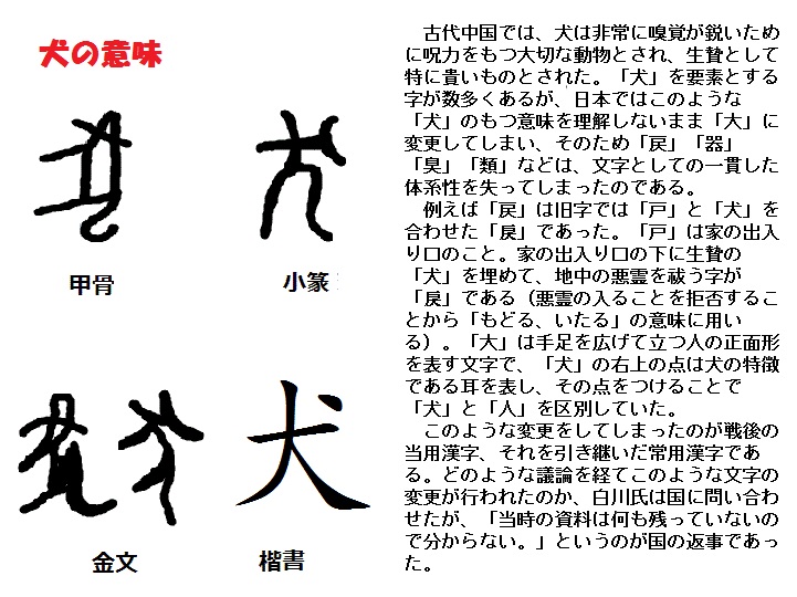 白川氏は著書「常用字解」の中で、「犬」が「大」になったことについて、次のように仰っています。