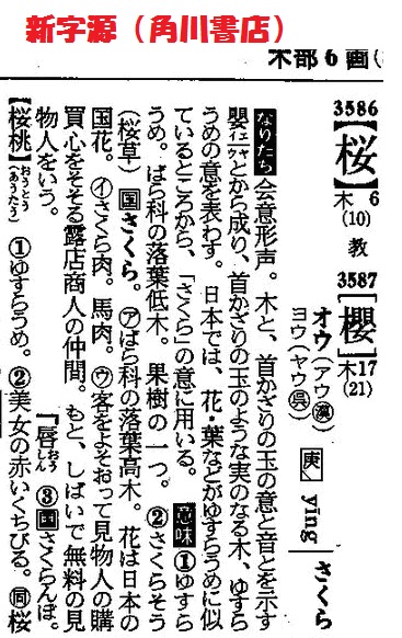 「櫻という字を分析すれば、二階(二貝)の女が気(木)にかかる」