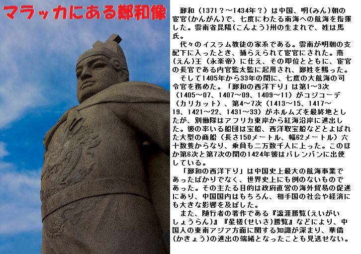 昨日取り上げた五柳先生ではないが、「書を読むことを好めども、甚解を求めず」と言います。判る範囲で鄭和について調べてみました。