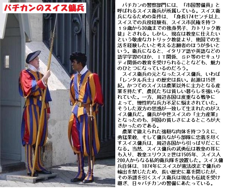 ローマ法王庁は昔から、番兵はスイスの傭兵だと聞いている。