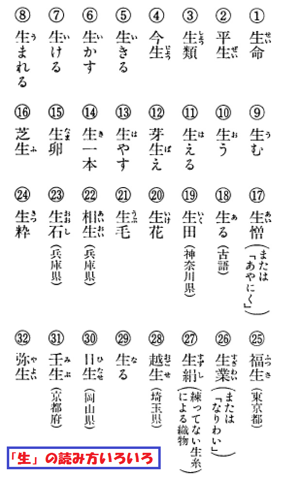 古来漢字は一字に多くの音・訓があり、名乗り字や宛字があって「生」などは150通り以上あって正確な所はよく判らないほどです。