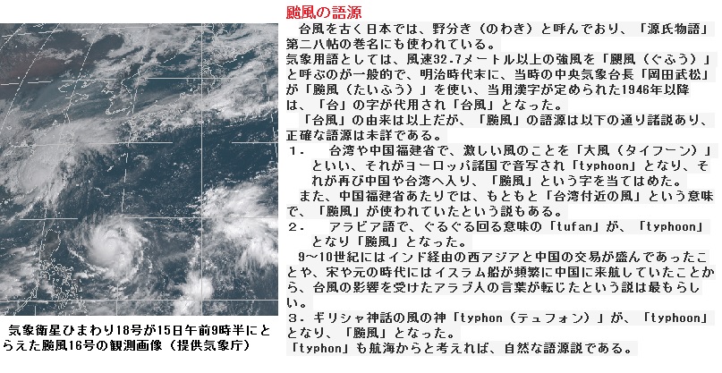 漢字や漢文から仮名や日本文を創造した先祖の苦しみを思えば、当用漢字制定によって漢字の枠が設けられたと嘆くふしもあります。例えば、颱風(タイフウ)を「台風」と書いたのでは意味を成しません。漢字は表意文字で見て意味が判るところに重要な面があるのです。とはいえ、颱風はもともと typhoon の宛字なのです。