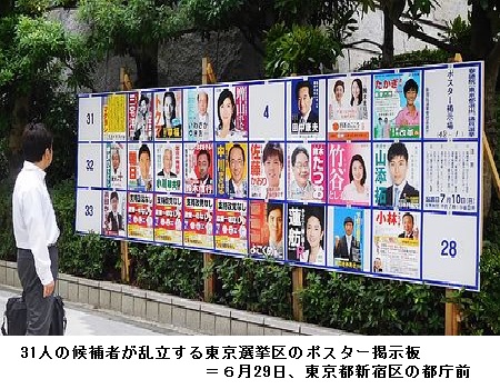 共産党の新人、山添拓も「政治とカネの疑惑を生む都知事を2代にわたり出した自公の責任は重い」と指摘する。陣営は「舛添氏を都議会で追い詰めたのは共産党だ。舛添問題は選挙戦に追い風」とほくそ笑む。おおさか維新の会の元職、田中康夫は「新宿西口の摩天楼(都庁)に『富すれば鈍する、地位が人を駄目にする』という方がいた」と舛添を当てこすった。