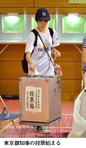都知事選 きょう投開票 ―― 舛添要一氏の辞職に伴う東京都知事選は三十日、選挙戦最終日を迎え、各候補者は厳しい暑さの中、都内各地で最後の訴えをした。三十一日午前七時~午後八時に投票、即日開票され、新たな首都のリーダーが決まる。