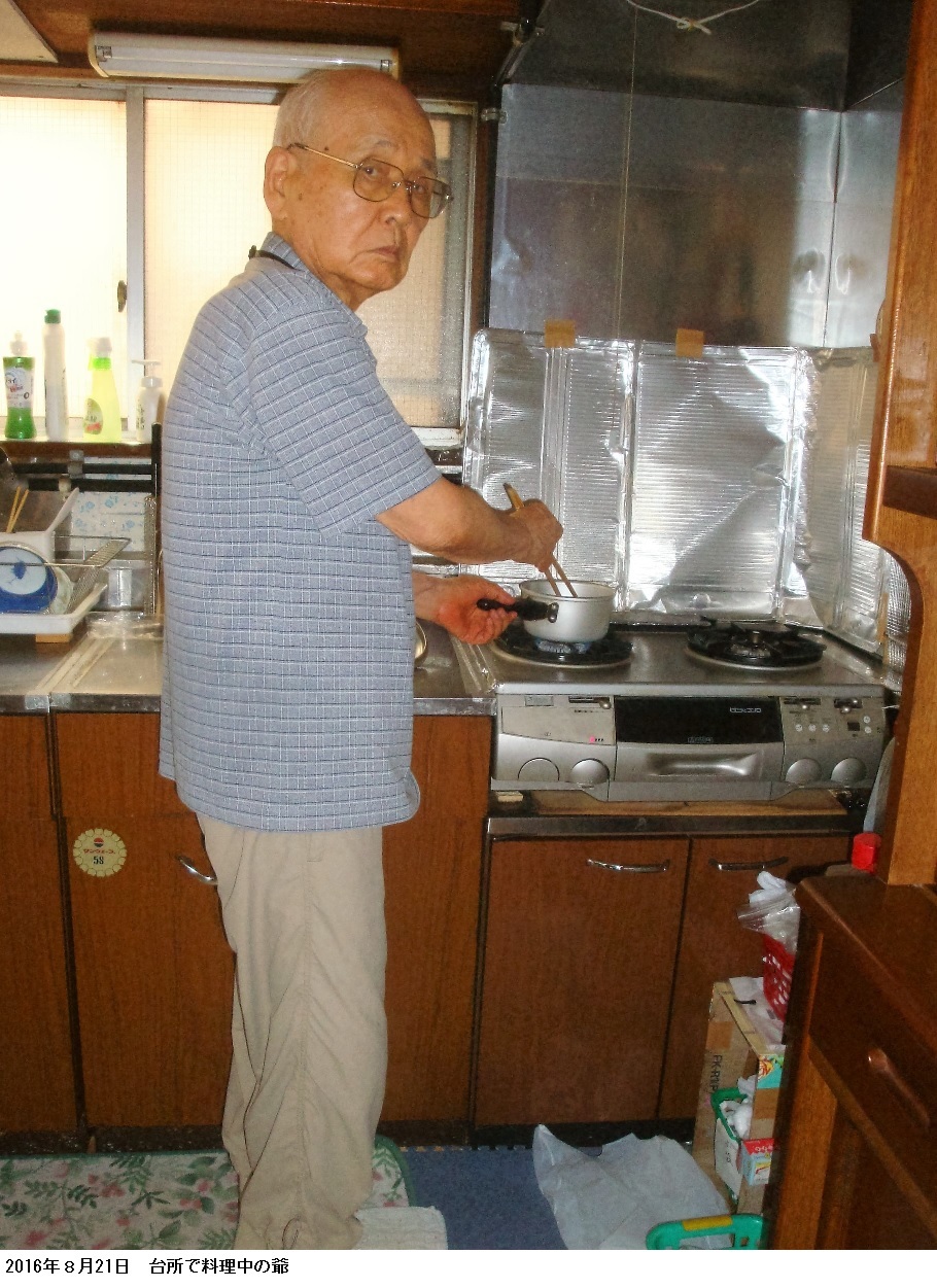 伯父さんが食事作り、洗濯干し、買い物等々で感謝しています。部屋の掃除は介護ケアセンターからのヘルパーさんが週一回ずつ来てくれます。