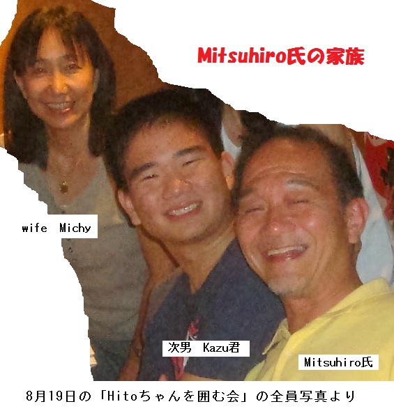 一昨日(8月22日)の夜、Mitsuhiro氏が西伊豆旅行の帰りだということで土産をもって訪ねてくれました。何でも、Mitsuhir氏一家では毎年8月は西伊豆旅行をするのが恒例になっているようです。臨海学校を催した地でもあり、Mitsuhiro・Michy夫妻の出会いの地でもあったわけですから、然もありなんというところでしょう。