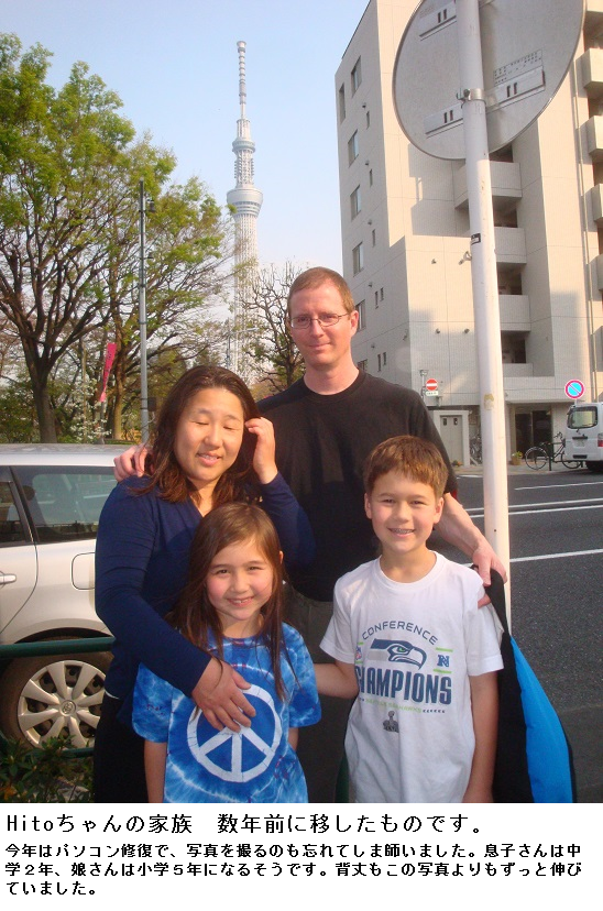 今日は昨夜の話で、爺のパソコンがメール送信不能になっていることを聞いて、午後からHITOちゃんが、家族で訪ねてくれて、パソコンを直してくれました。HITOちゃん どうもありがとう。