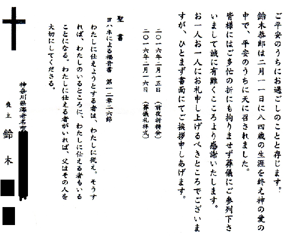 藤沢市のMY氏より、先日亡くなった海老名市のKS氏の葬儀の様子を報せてきました。曰く、
