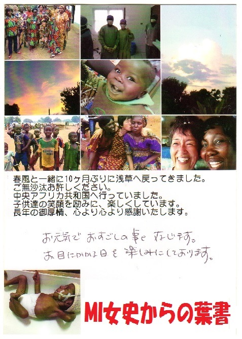 昨日、国境なき医師団で活動している塾友のMI女史より葉書を頂きました。