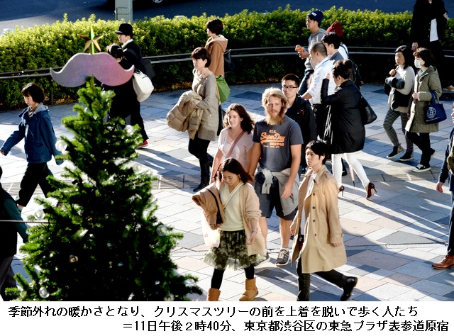 その後、低気圧の北上に伴い天気は西から回復。東京都心で24・1度、名古屋市で22・6度、大阪府豊中市で21・6度、長野県佐久市でも21・1度を記録した。西日本~東日本の18都府県の70以上の観測点で、12月の最高気温の記録を更新した。
