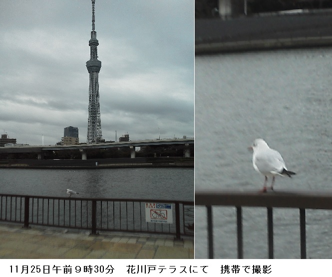 今朝は朝食後散髪に行きました。帰りに隅田川沿いに帰宅しましたが、まだちらほらですが今年もユリカモメがやってきたようです。いよいよ冬の到来ですね。