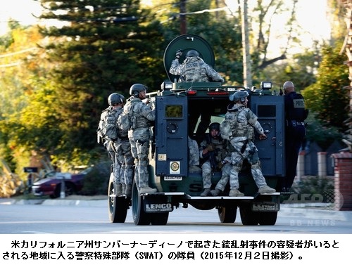 米銃乱射事件の容疑者、「イスラム国」忠誠の可能性=政府筋 ―― [ワシントン/イスラマバード 4日 ロイター] - 米カリフォルニア州サンバーナディーノで発生した銃乱射事件で、警察に射殺された容疑者2人のうち1人が過激派組織「イスラム国」への忠誠を誓っていた可能性がある。複数の政府筋が4日明らかにした。